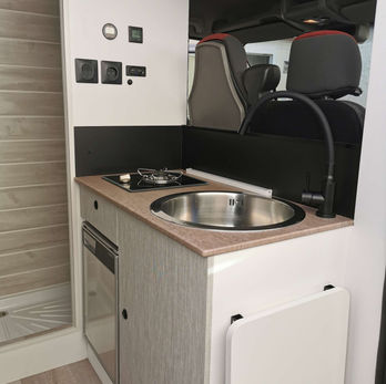 - frigo 12 volts à compression 50 litres ,lit peigne avec matelas, plaque gaz 1 feu, 2 banquettes,